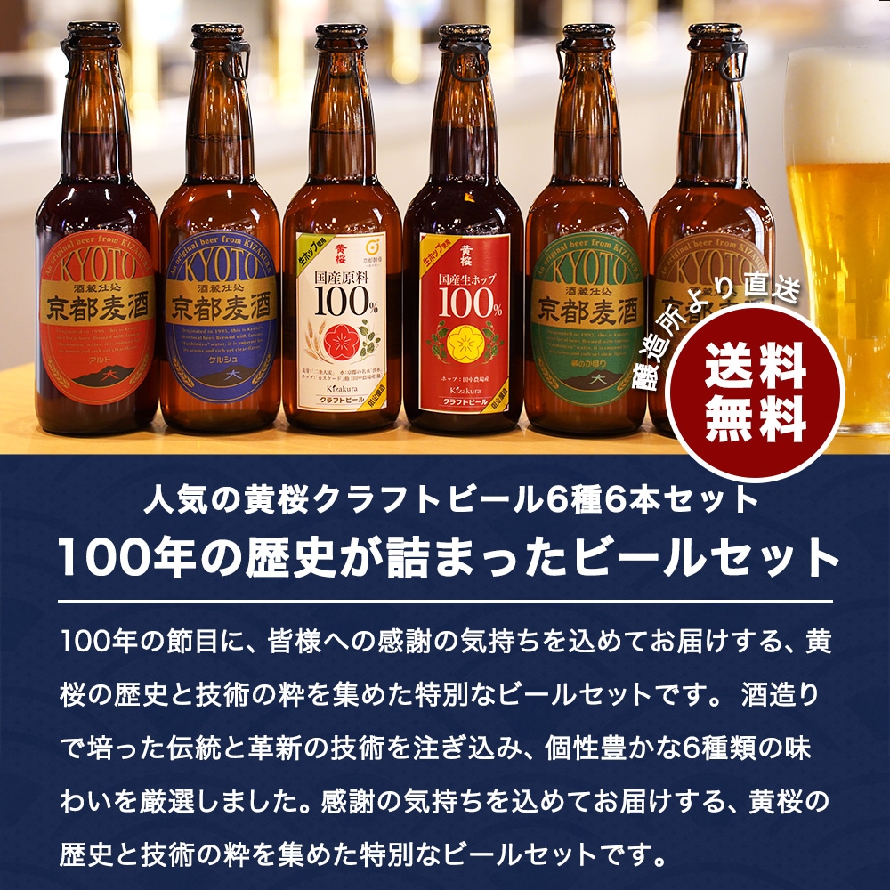 黄桜 100周年記念生ホップ瓶ビール 6種6本 (330ml×6本) 【商品番号:7930】